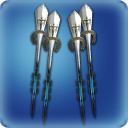 Miku sports custom nouliths. Infused and built with treated crystals and housed in a special metal, the Sharlayan design has been augmented to cast aspected magics in addition to Sage spells, allowing her to attack at a distance with elemental spells. She is rarely seen without them in the field.